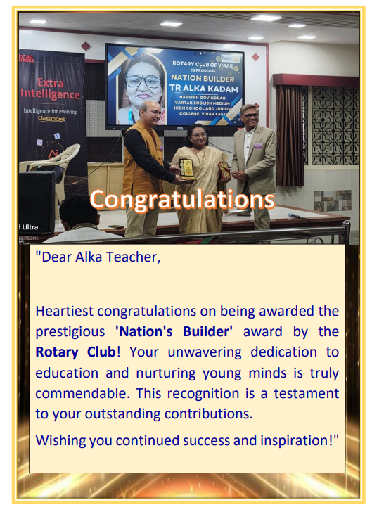 विदयार्थी प्रिय राऊतसर यांचा हा सन्मान खरोखरच उल्लेखनीय आहे. विदयार्थी व शाळेच्या सर्वांगीण विकासासाठी संकटकाळी व भयावह परिस्थितीत ऑनलाईन शिक्षणाची धुरा अविरतपणे समर्थपणे वाहत आहेत.