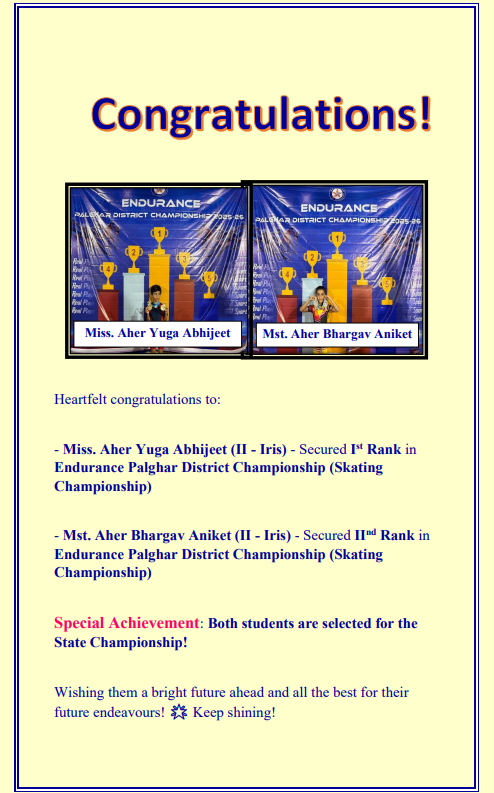 We are extremely delighted to announce that our student Miss Prachiti Kiran Gaikar Class III Gamma won the State level Child Painter award I Group A (Class I to V) organized by Teacher’s Goal, Rotary Club of a State level innovative painting competition 2024 in association with Yavatmal and Ramshej Shikstan Sanstha Ashewadi.